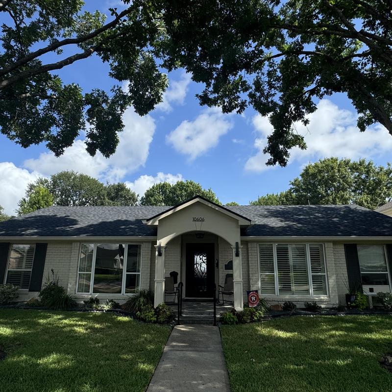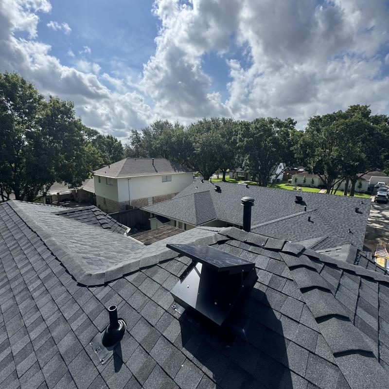 Hellenic Roofing and Construction installed Owens Corning Onyx Black shingles on a residential roof in Houston, Texas. This asphalt shingle installation improves protection against weather and helps maintain roofing longevity. The project used durable materials and followed standard roofing practices to ensure a secure and reliable finish.