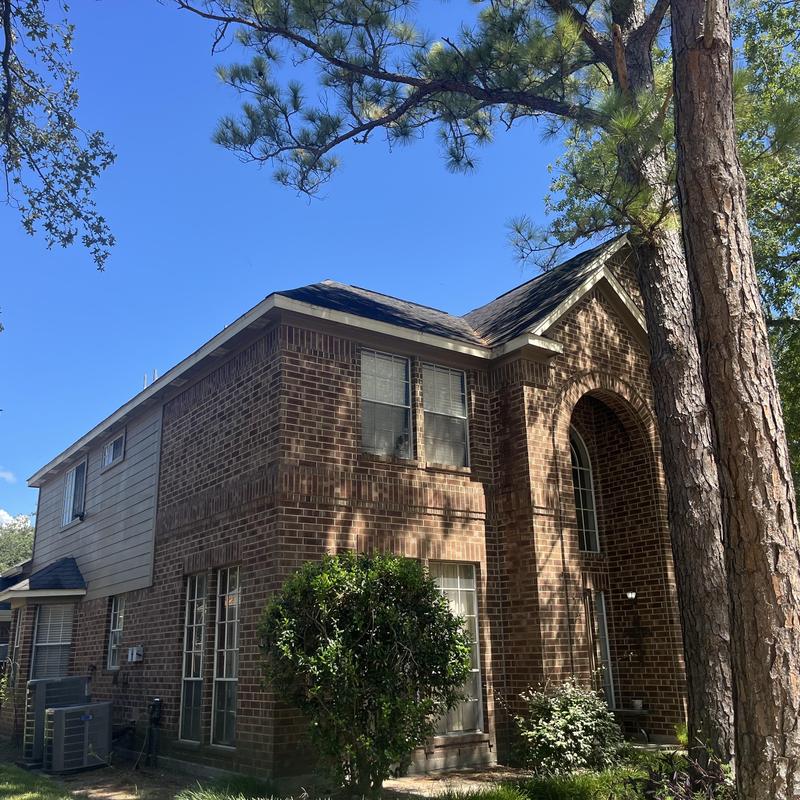 Hellenic Roofing and Construction installed Owens Corning Brownwood shingles on a residential roof in Humble, Texas. The crew completed the shingle replacement to improve overall roof durability and weather resistance using quality asphalt materials suited to local climate conditions.