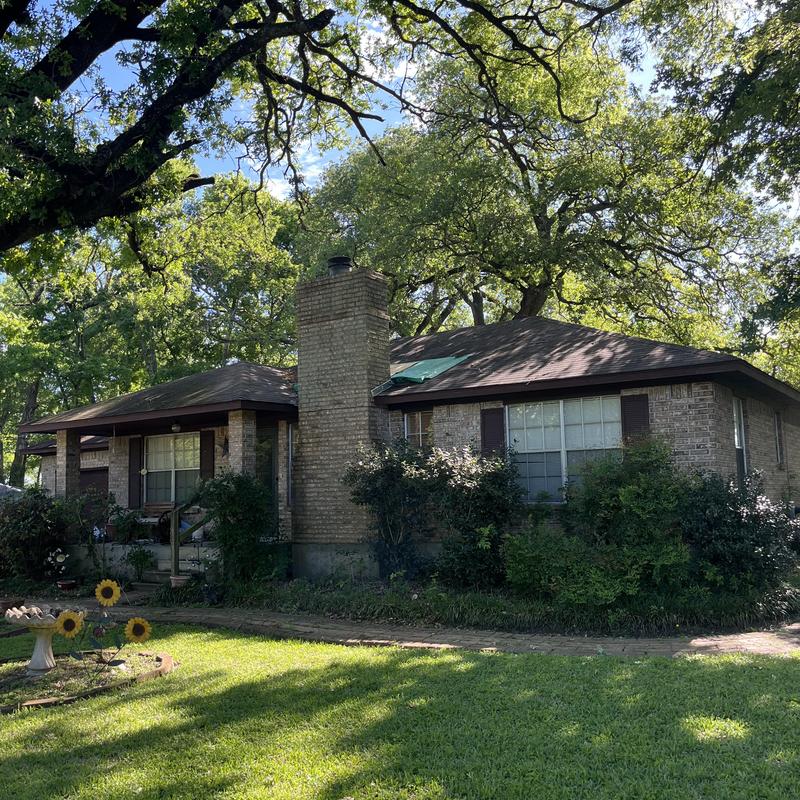 Hellenic Roofing and Construction installed GAF HDZ Weatherwood shingles on a residential roof in Beeville, Texas. The team completed the shingle replacement to improve roof durability and ensure weather resistance.